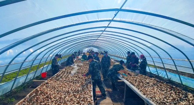 在白鹅产业一线,队员们在专业技术人员的指导下,快速学习养殖技术,全身心投入到白鹅孵化、育雏、养殖、屠宰、销售各个环节的工作中。在黑蜂、肥业、粮食储运、羊肚菌以及刺五加产业一线,队员们也发挥了重要作用,从技术、资源、服务等方面为产业高质量发展提供支撑。 “我们这十支突击队有的队员连续奋战4个昼夜助力鹅雏孵化;有的则是深入江浙沪,开发白鹅销售渠道;部分队员还深入地方、农垦举办培训班,为农户提供个性化施肥方案。为了打开销售渠道,队员们还深入目标客户群体,精准推介产品。工作中,大家不怕苦、不怕累,相互配合、互助攻坚,在各类‘急难险重’任务中发挥了重要作用。”党员突击队队长张文豪告诉记者。