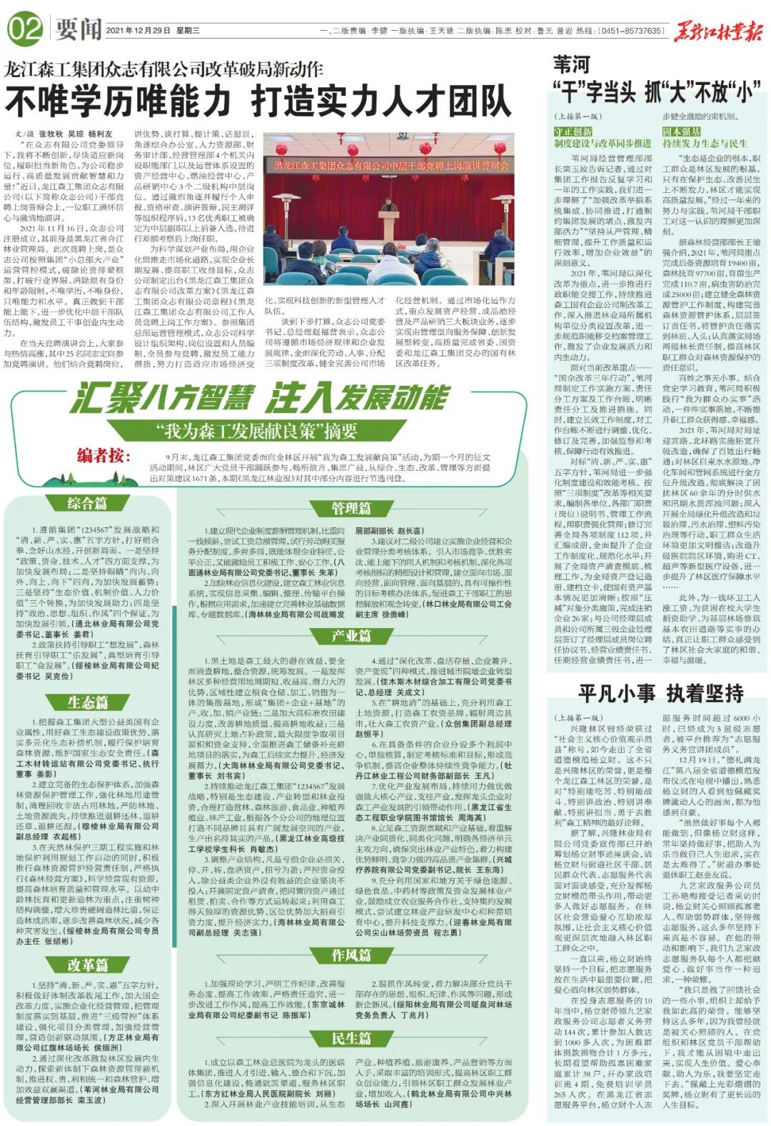 | 【黑龙江林业报】po18 众志有限公司改革破局新动作 | 不唯学历唯能力 打造实力人才团队 | |