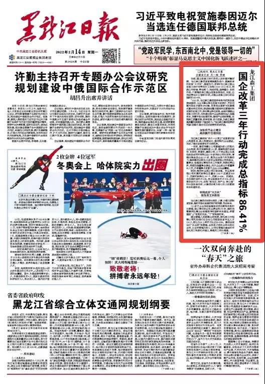 | 【媒体关注】黑龙江日报头版 | po18 :国企改革三年行动完成总指标86.41% | |