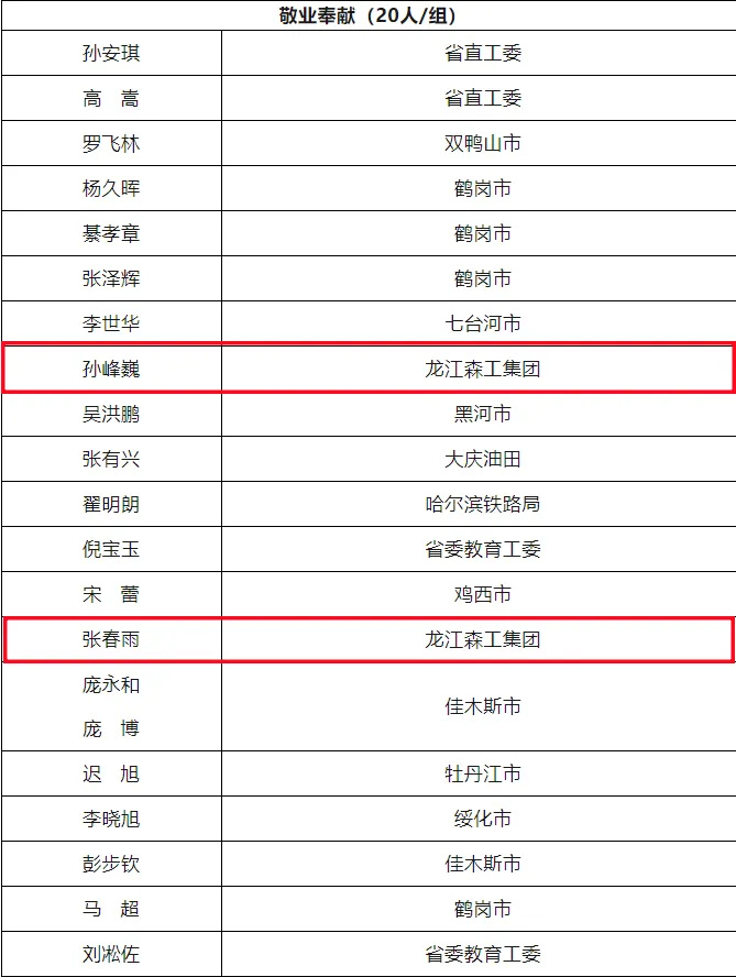 孙峰巍和张春雨入选敬业奉献类“龙江好人”。