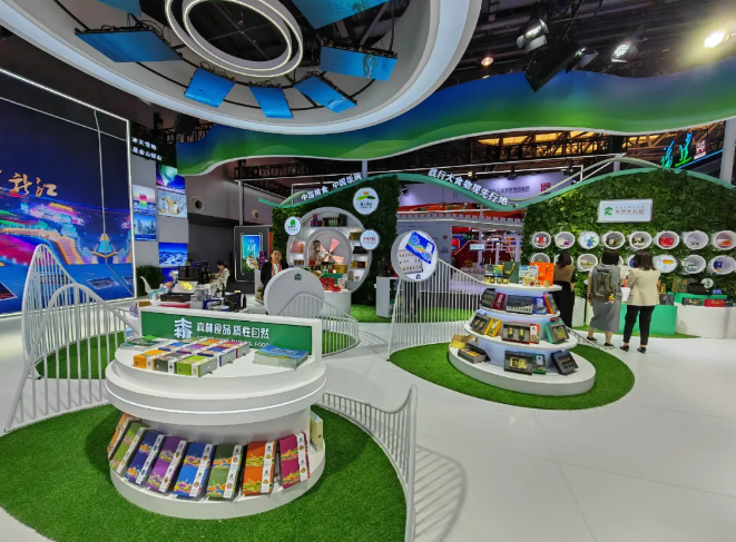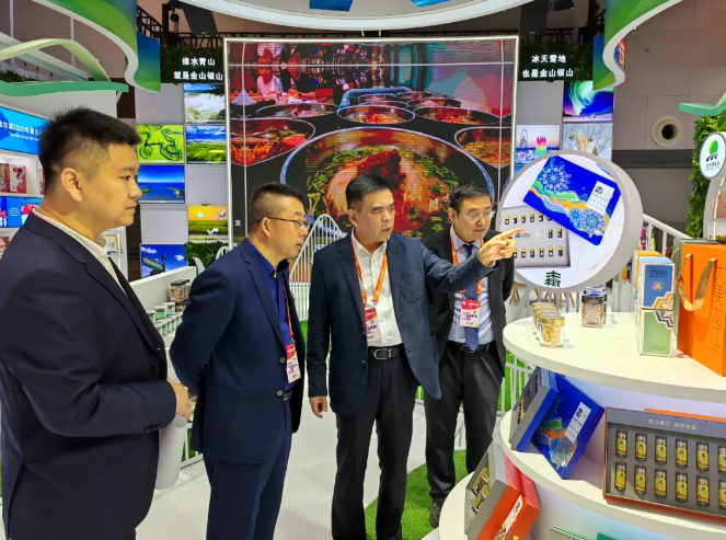 “森”标、“黑森”“森林好客”“紫津坊”“迎春黑蜂”“威虎山”等6个品牌成为“践行大食物观先行地”展览的主要内容;中国雪乡、凤凰山作为展示黑龙江冰雪经济和全域全季旅游的亮点内容,通过视频、明信片等形式进行现场展示宣传。