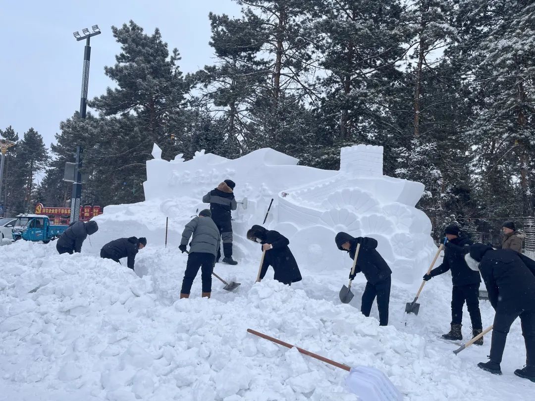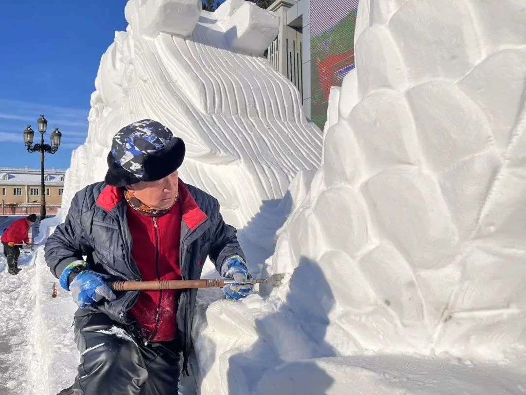 尽管室外气温已低至零下二十摄氏度,但在鹤北局公司职工文体中心东广场的冰雕、雪雕大赛现场,却是一片热火朝天的繁忙景象。各参赛单位干部职工正在各自参赛区域忙碌着,他们以雪为卷、以铲作笔,全力开启雪雕作品创作,将冬日的寒冷转化为艺术的热情。放眼望去,一件件雪雕作品栩栩如生,勾勒出一幅幅令人陶醉的冰雪画卷,让林区职工群众在冰天雪地里感受到了冰趣、雪趣。