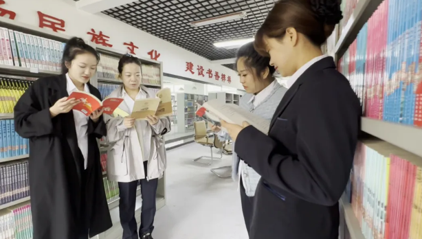 在省林业卫校,校团委带领全体团学干部走进学校图书馆,开展“好书伴成长 书香满校园”读书活动。在图书管理员的讲解下,同学们充分了解图书的检索、序列、书籍种类等知识。大量经典著作激起了同学们浓厚的阅读兴趣,纷纷将借阅的图书带进班级,与同学们一起阅读、赏析。