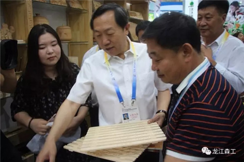在李坤的陪同下,王晓东来到森工展区视察,在了解了黑森系列产品后,他说,森工林区资源丰富,生态环境良好,绿色产品具有纯天然、无污染的优势,希望以后能与河北省展开洽谈合作。